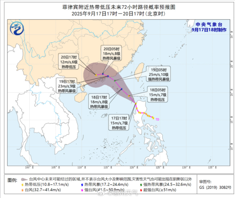 据@广东天气 消息,18日8时,热带低压已进入南海东北部,其中心位于距离广东省汕尾市东南方向约465公里海面上,就是在北纬19.9度、东经118.6度,中心附近最大风力7级(15米/秒),中心最低气压为1005百帕。预计,热带低压将以每小时15-20公里的速度向西北方向移动,强度逐渐增强。将于今天(18日)加强为编号台风,19日中午至夜间以热带风暴级或强热带风暴级(9~10级)登陆我省中东部沿海地区。受其影响,18~19日,南海北部海面和我省中东部海面风力自东向西加大至7~9级阵风10~12级;19~20日,我省有一次暴雨到大暴雨局部特大暴雨过程(面上80~120毫米,最大350~400毫米),中东部沿海市县有7~10级阵风。
