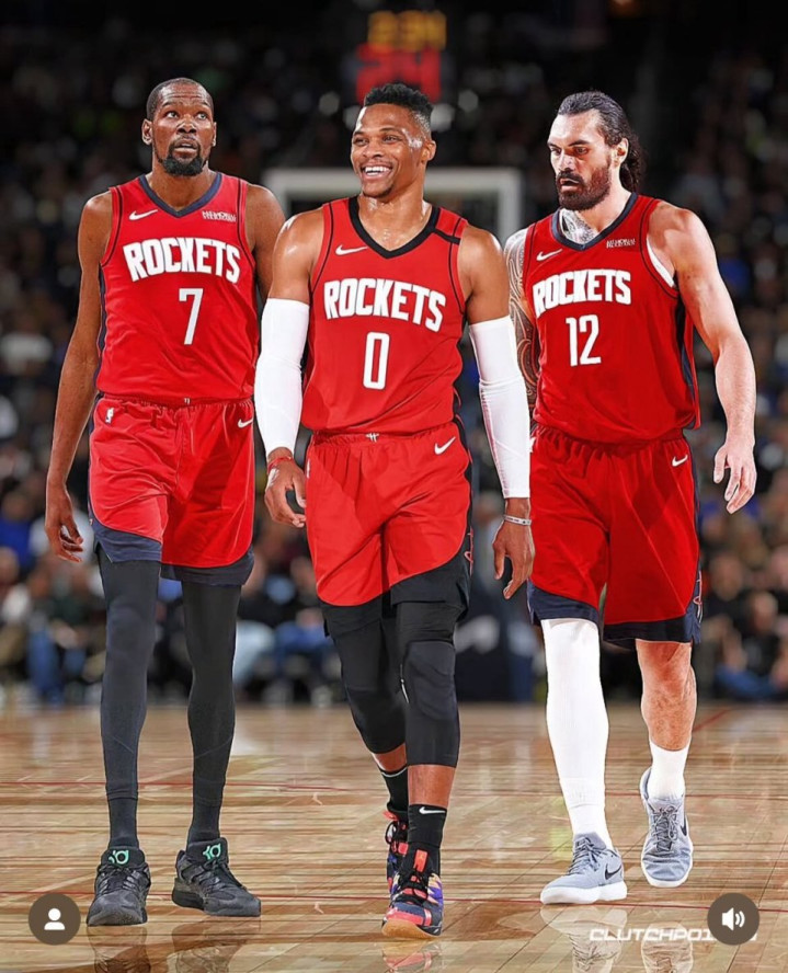 与此同时,ClutchPoints更新社媒,晒出一张威少加盟火箭的合成照与球迷分享。